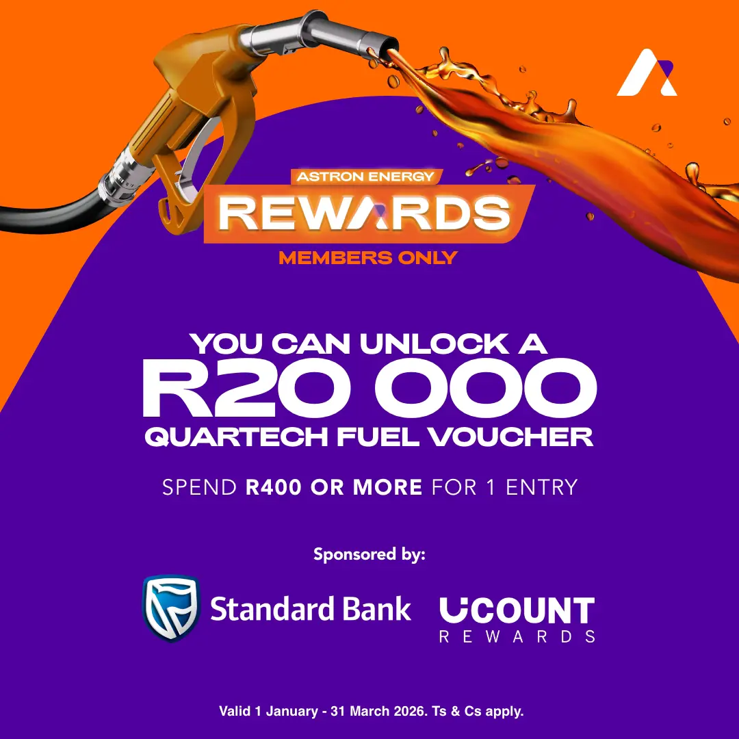 One lucky Astron Energy Rewards member could be rewarded with an exclusive R20 000 digital fuel voucher sponsored by UCount Rewards.
